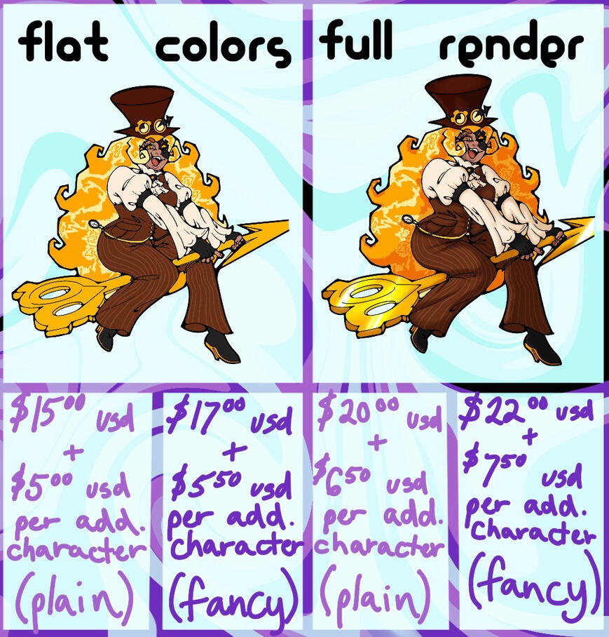 | Drawing Type | Base Price | +$ Per Addi. Chara. |